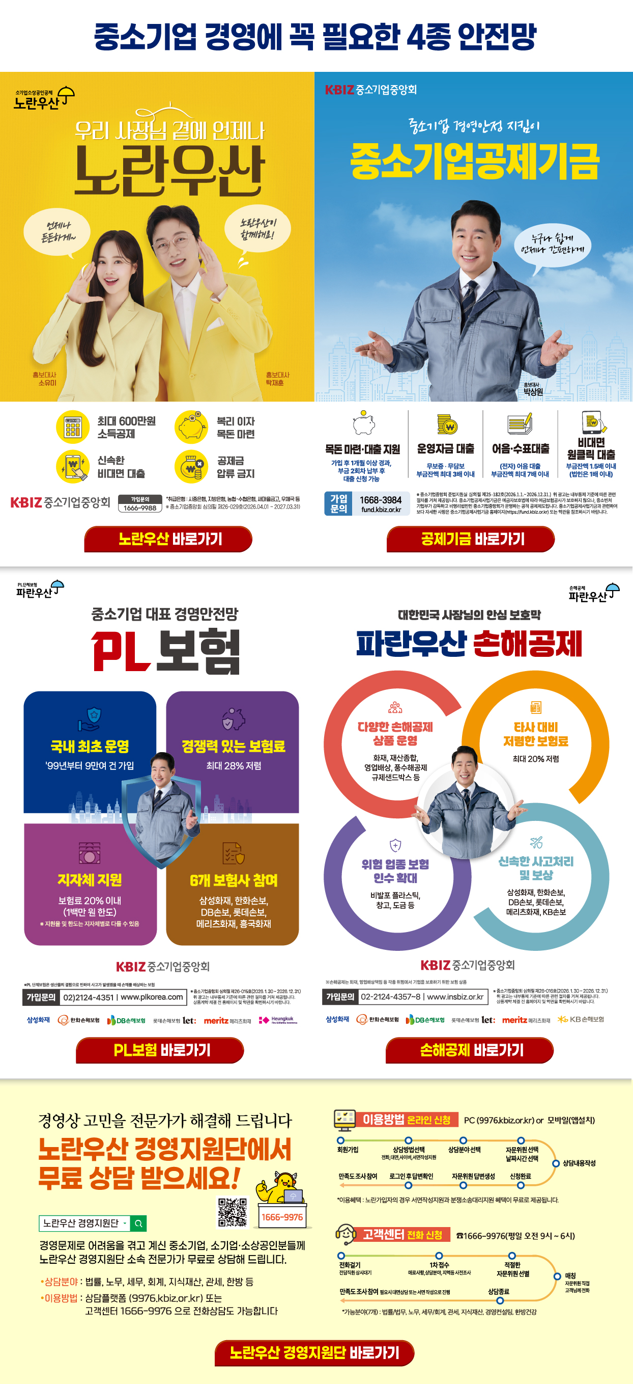 중소기업중앙회 공제상품 안내 (노란우산 공제, 중소기업공제기금, PL보험, 파란우산 손해공제, 경영지원단)