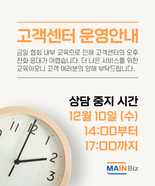 금일 협회 내부 교육으로 인해 고객센터의 오후 전화 응대가 어렵습니다.
