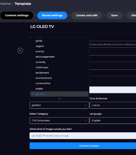 Select Required Marketing Content Channels and Input Variables: Choose the necessary channels such as Instagram, blogs, and ad copy. Select and input the desired emotions, tone & manner, and purpose for creating the content. | |